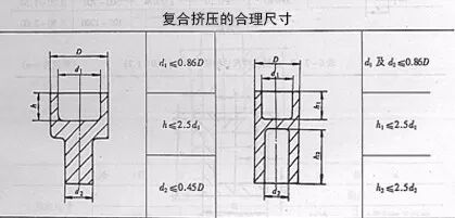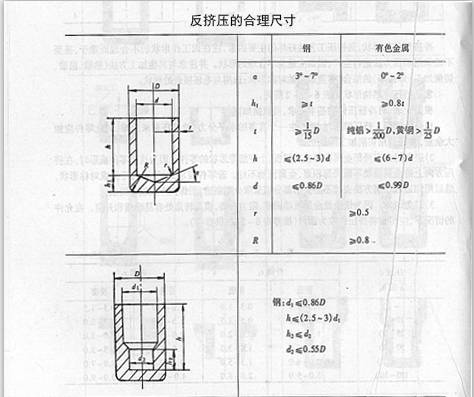 板材挤压成形作成内凹形状:用板材挤压凸起形状时,在另一侧作成四状时,在另一侧作成四状,有利于金属的流动。冷挤压件的合理尺寸如图: