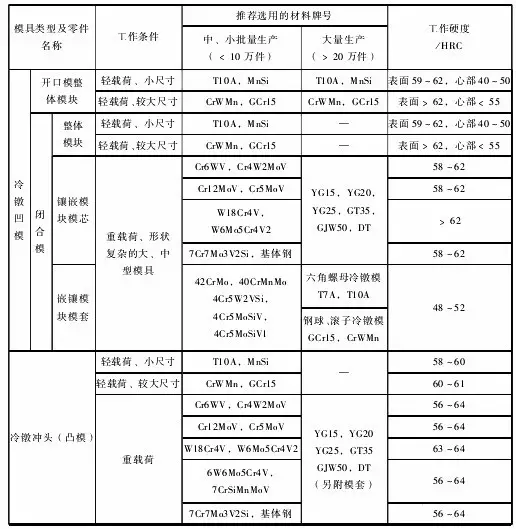 冷作冲压模具如何选材,主要从冷冲裁模、冷拉深模及冷镦模及冷挤压模四个方面来给出冷作冲压模具选材的建议。