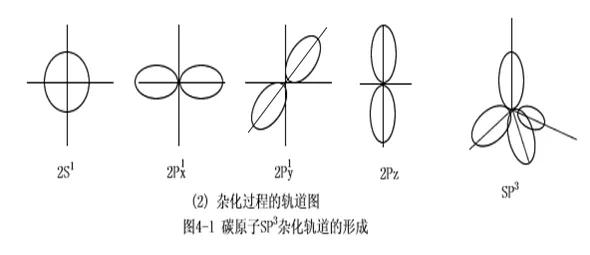 电子结构:根据杂化理论,C原子在反应时,激发一个2s电子到2pz轨道上去。一个s轨道和三个p轨道混合起来,形成四个新轨道---sp3等价杂化轨道,每个sp3杂化轨道具有1/4的s成分和3/4的p成分,形状都相同,这四个轨道的对称轴之间的夹角都是109。28、。