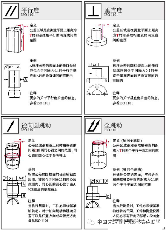 项目 | 直线度 | 平面度 | 圆度 | 圆柱度 | 平行度 | 垂直度 | 倾斜度 | 同轴度 | 对称度 | 位置度 | 圆跳动 | 全跳动 |