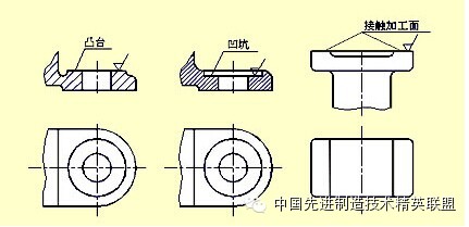 零件上与其他零件的接触面,一般都要加工。为了减少加工面积,并保证零件表面之间有良好的接触,常常在铸件上设计出凸台,凹坑。螺栓连接的支撑面凸台或支撑面凹坑的形式;为了减少加工面积,而做成凹槽结构。