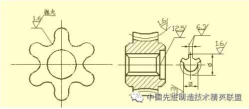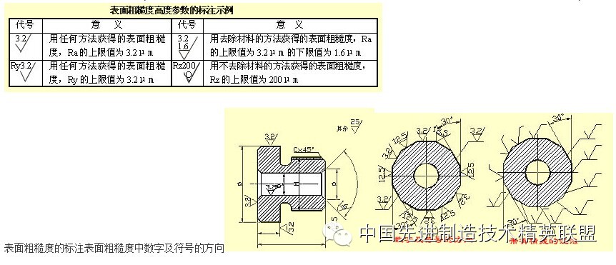 2. 粗糙度代号Ⅱ为第2种过渡方式。它是取新国标中相应最靠近的上一档的第1系列值,如原光洁度为▽5,Ra的最大允许值取3.2。因此,取该值提高了原表面粗糙度的要求和加工的成本。