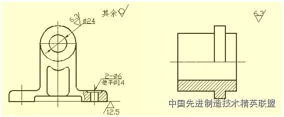 零件的表面都应该注明粗糙度的等级。如果较多的表面具有相同的表面粗糙度等级,则要集中在图样右上角标注,并加“其余”字样。