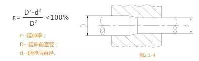 使原毛坯的横断面积减小而长度增加的工序叫延伸(见图2.1-4 )。 拉丝、缩径等属于此类,延伸的变形程度: